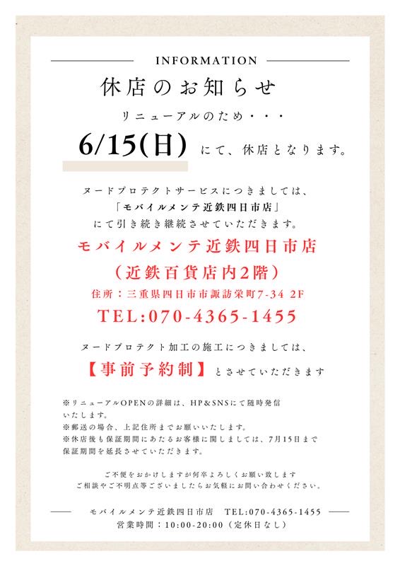 - A : 保証期間内にご来店いただけない場合は保証サービスをご利用いただくことはできません。加工前にご記入していただく同意書に明記させていただいておりますのでご了承ください。